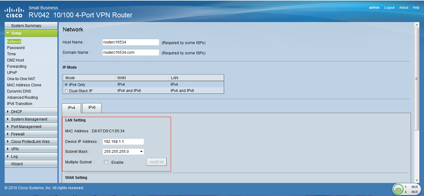 1) 中心端Cisco rv042设定