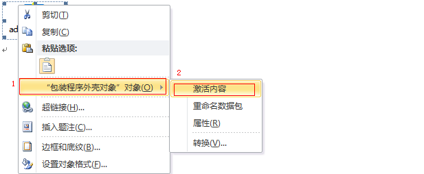 右击上图“addroute.bat”-“包装程序外壳对象”-“激活内容