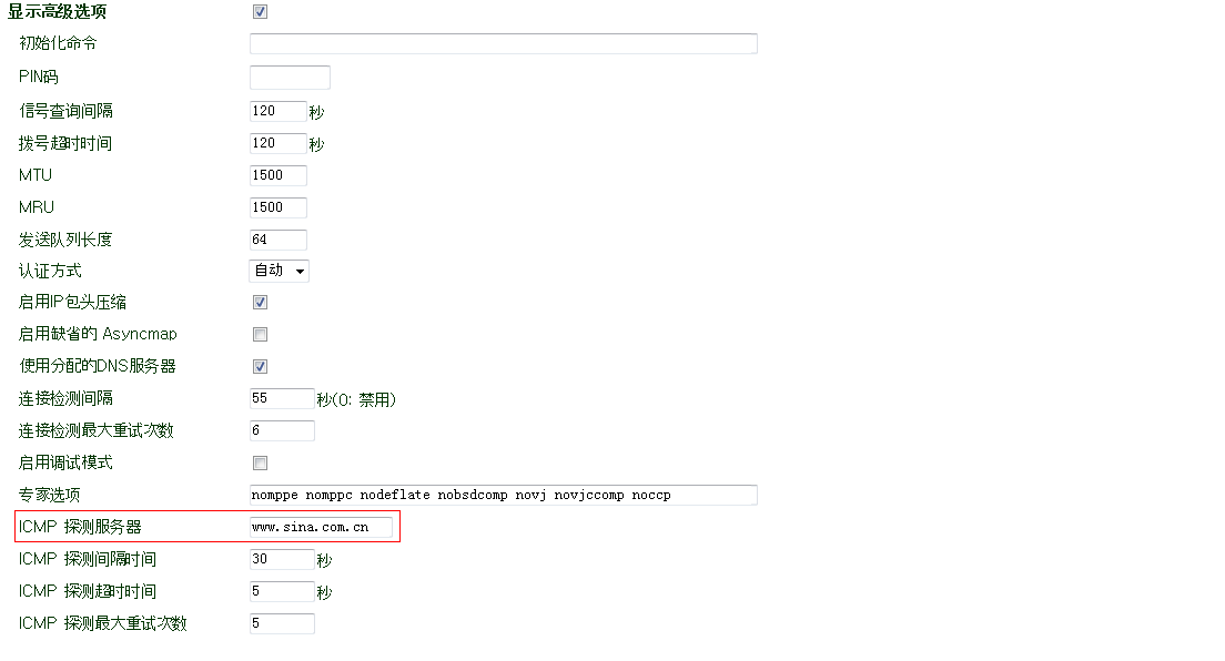 拨号端口设定;