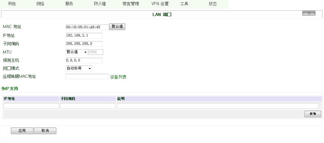 LAN口IP设定;