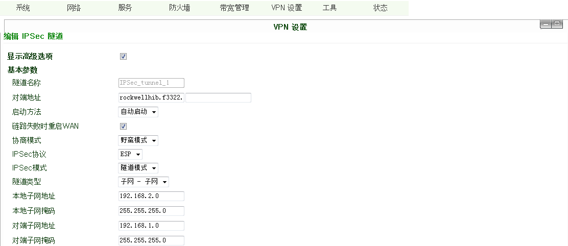 基本参数: 设置IPSec隧道的基本参数