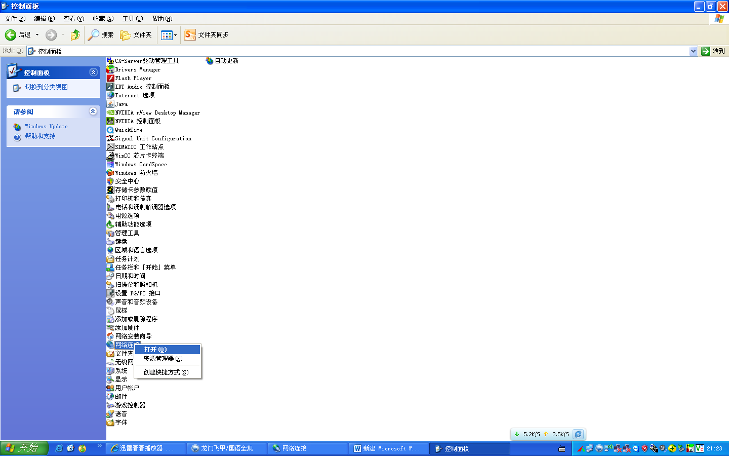 点击“开始”—“控制面板”-“网上邻居”,双击打开;