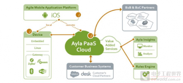 Ayla云服务是IoT平台的核心,提供对产品网络的管理、控制,以及丰富的商业智能、分析服务和自动化运维,管理用户注册、设备开通、控制和通知、提供日志和分析服务、数据开放API。