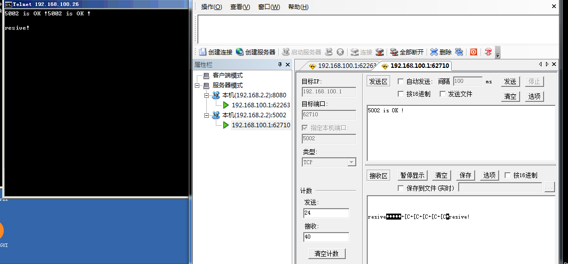 与下端设备192.168.2.2:5002 成功建立TCP链接