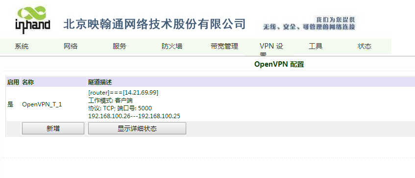1. 新建OpenVPN Clinet,OpenVPN 隧道命名为:OpenVPN_T_1 (名称为自定义,但后面的NAT映射需要用到此隧道名,因为OpenVPN服务开启之后,会生成一个此名称的虚拟接口)。
