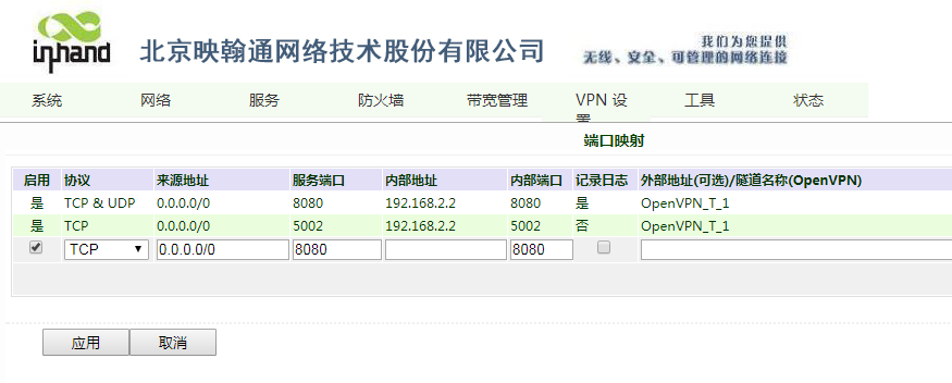 3. 将路由器下端设备192.168.2.2:8080&5002 端口映射到虚拟接口“OpenVPN_T_1”