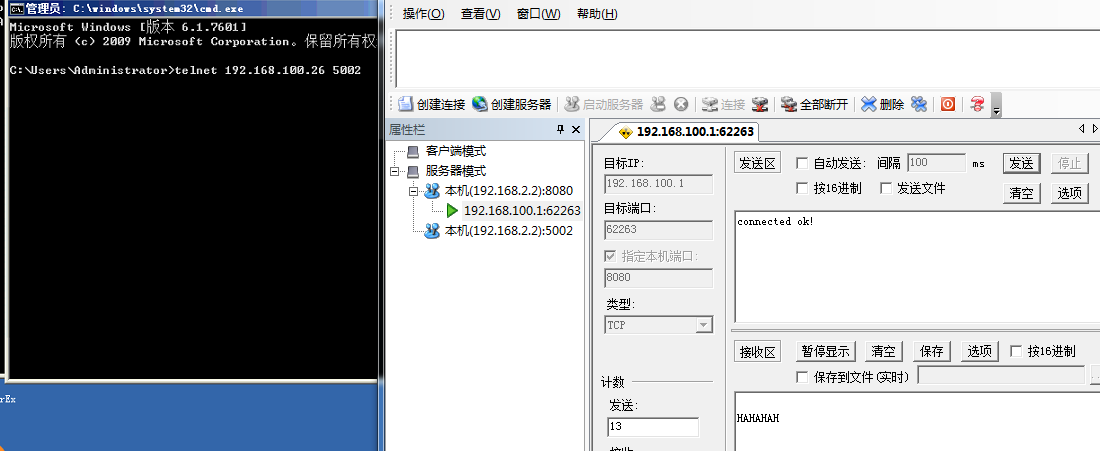 4.下端设备192.168.2.2 建立TCP Server 8080&5002