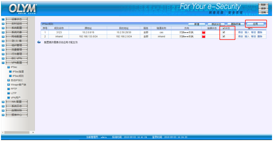 奥联与R900系列配置IPsecVPN 配置文档 Carmelo Anthony 这家伙很懒,还没有设置简介 0 人点赞了该文章 · 3939 浏览 奥联与R900系列配置IPsecVPN 配置文档 R900配置: 1.插入SIM卡,ping探测测试SIM卡可以上网 2.进入IPsecVPN配置页面 3.如图配置IPsecVPN 4.配置完OLYM端IPsecVPN的配置,如下图显示,已建立IPsecVPN连接 奥联端配置: 1.新增IPsecVPN隧道 2.如图配置IPsecVPN隧道 3.新增IPsecVPN规则 4.如图配置IPsecVPN规则 5.配置完成后应用隧道 PS:为了维持IPsecVPN稳定,建议开启ICMP探测服务