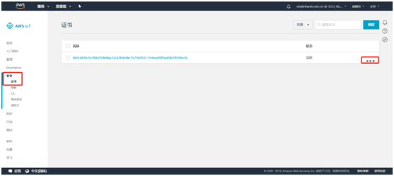 进入安全--证书页面,这里可以看到已创建的证书。点击“...”