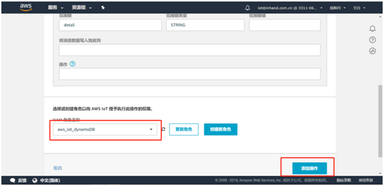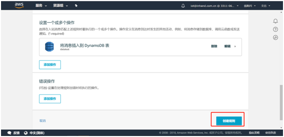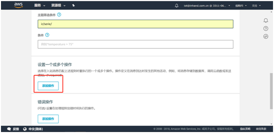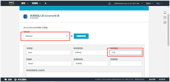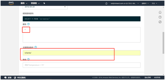 - 固定) desc: 手动告警 # IO寄存器描述(配合平台显示)4.6.4 写IO寄存器策略组支持平台和SMS对IO寄存器进行写操作,需在对应 - id: 添加如下格式的字段:writeable: # 添加写功能 address: Demo.40010 # 写地址(控制Id+寄存器地址) expression: float($var) # 写前转换公式($var固定)4.6.5 实时告警策略组支持IO的实时告警,需在对应 - id: 添加如下格式的字段:warnings: # 添加告警功能 - expression: values['Demo.40010']/10 > 30.0 # 告警触发条件 code: 101 # 错误代码 level: 2 # 等级(报警等级,1-提醒,2-警告,3-次要警告,4-重要警告,5-严重警告) desc: The temperature is above the setting(>30.0) # 告警描述 duration: 0 # 死区持续时间(可删字段) interval: 0 # 间隔(可删字段) - expression: values['Demo.40010']/10 <10.0 code: 102 level: 2 desc: The temperature is below the setting (<10.0)4.7 导入配置文件并重启APP编辑好配置文件后需要将配置文件导入相应APP并重启APP。进入python--Python APP页面中选择需要导入配置文件的APP后点击浏览选择对应配置文件并导入即可。第一步:导入配置文件 第二步:重启APP进入python--运行状态页面,点击App运行状态进入supervisor页面 点击重启APP,APP重启后对应pid值会变化。 4.8 查看日志当InModbus2出现如下日志说明下端控制器数据已经发送至AWSIoTapp。 当AWSIoT出现如下日志说明数据已经发送至AWS平台。 当AWSIoTapp出现如下日志请检查在AWS平台上操作是否正确或重启AWSIoTAPP。 五、订阅主题 在AWS平台测试页面输入配置文件中serie_topic填写的主题并订阅主题 点击订阅后可以在左侧看到已订阅主题,同时在下方能看到已上传的数据。至此就完成了通过InModbus2协议将下端控制器数据上传至AWS平台的操作了。六、数据存储至Dynamodb数据库根据https://docs.aws.amazon.com/zh_cn/iot/latest/developerguide/iot-create-role.html中的规则栏设置权限及角色。设置完成后进入Dynamodb数据库 点击创建表 自定义表名称,主键为必填项。如需便于增加数据筛选条件可勾选添加排序键,类型选择字符串,随后点击创建。(建议类型使用字符串类型) 在行动中新建规则 填写规则名称,属性填‘*’,主题筛选条件填入需要获取哪个主题的数据。 点击添加操作,选择将消息插入到DynamoDB表并点击配置操作。 选择已创建的表名称,填入哈希键值 选择创建好的aws_iot_dynamoDB角色并点击添加操作,随后点击创建规则即可。 九、FAQ 编辑配置文件时请注意不同设备的mq_client_id和serie_topic均不要重复。 发现日志异常或平台上未能查看到数据请检查操作步骤是否有误或者重启AWSIoTAPP。 使用时需要关闭管理--设备远程监控平台中的设备远程监控平台功能。 AWS使用限制请查看此链接:https://docs.aws.amazon.com/zh_cn/general/latest/gr/aws_service_limits.html#limits_iot 在DynamoDB中创建表时如果表类型选择数字时请勿选择添加排序键