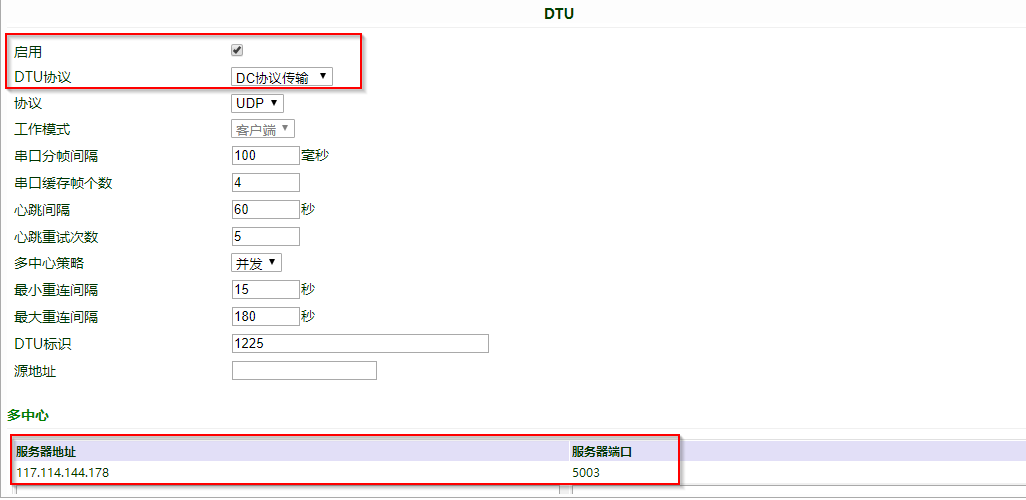 IR615使用DTU功能DCUDP方式连接主站服务器配置 李万龙 这家伙很懒,还没有设置简介 0 人点赞了该文章 · 4216 浏览 前提:确保IR615能够访问公网 1、首先在路由器上打开DTU功能 2、勾选DC协议,输入主站服务器IP和端口及DTU标识 3、连接成功后如下图 4、IR615日志显示如下