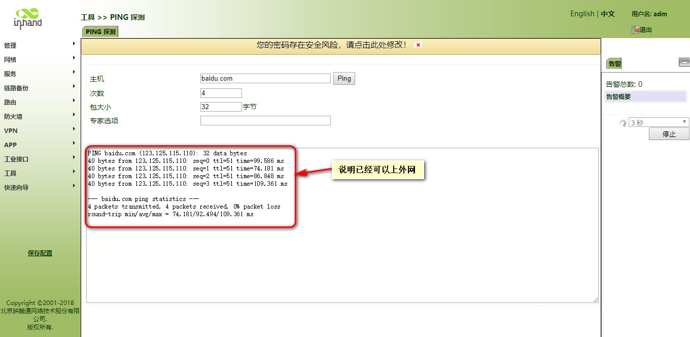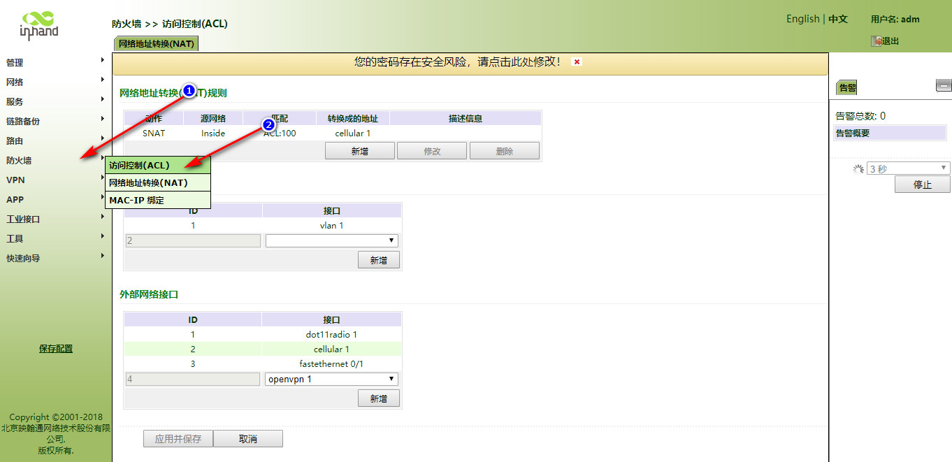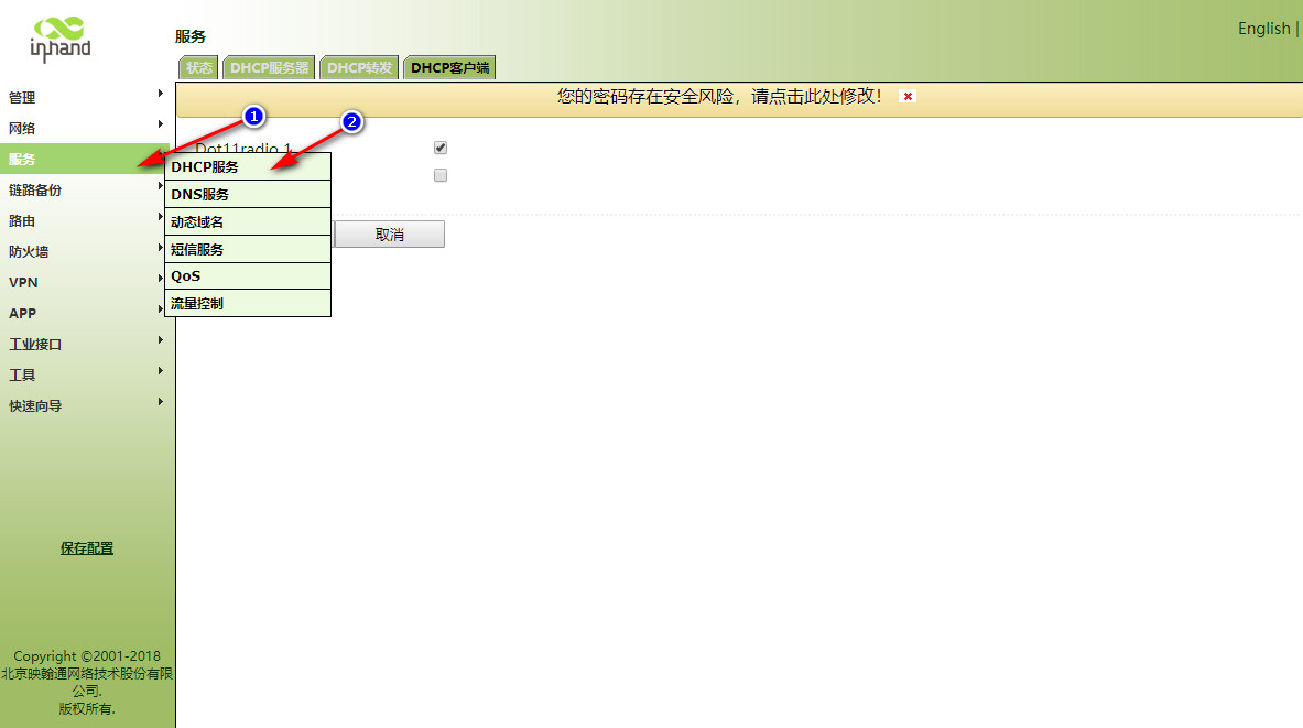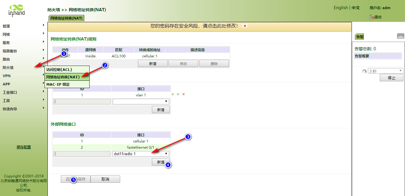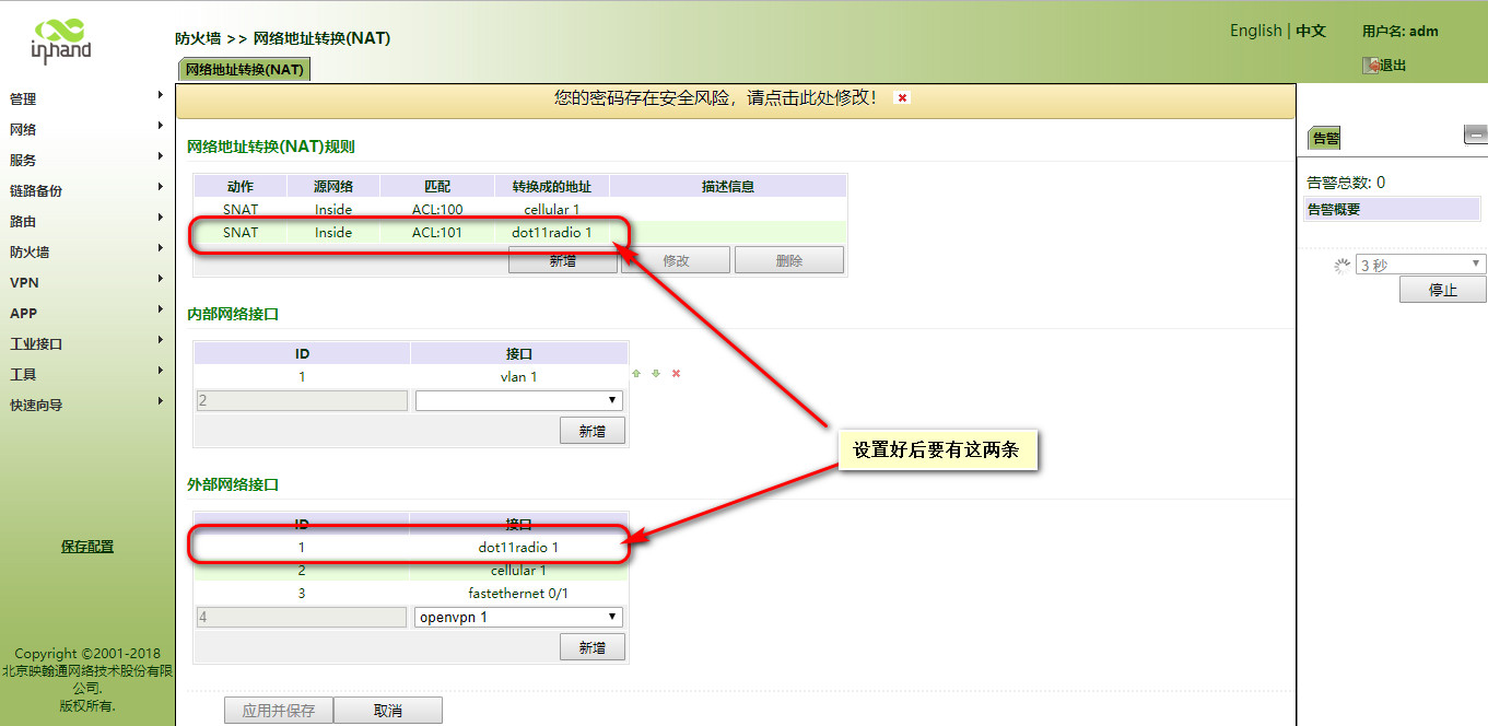 怎样使用IR900连接WiFi上网呢?? 奇兵 这家伙很懒,还没有设置简介 1 人点赞了该文章 · 3468 浏览 1、登录网关。 2、开启网关的DHCP客户端(默认开启)。 3、开启WLAN客户端功能。 4、填写要连接的WIFI信息。 5、查看连接情况 6、写静态路由。 7、设置防火墙 8、WiFi的DHCPserver没有开启的话继续向下执行,如果上边的已经测试可以通,则不需要执行下边的操作。