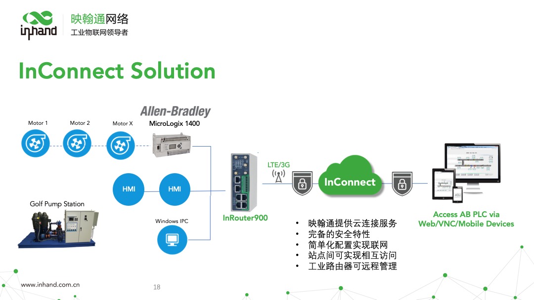 通过InConnect 可以将异地现场的以太网智能设备连接到同一个虚拟局域网中。用户可以远程访问现场的计算机、服务器、IP摄像机 、PLC、HIM、等各种以太网智能设备,支持异地设备与设备之间的访问。