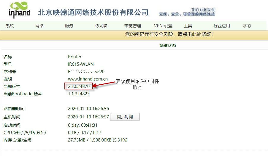 1、登录到网关(之前在现场的通过设备快线可以远程登录也可以远程切换)确认固件版本。