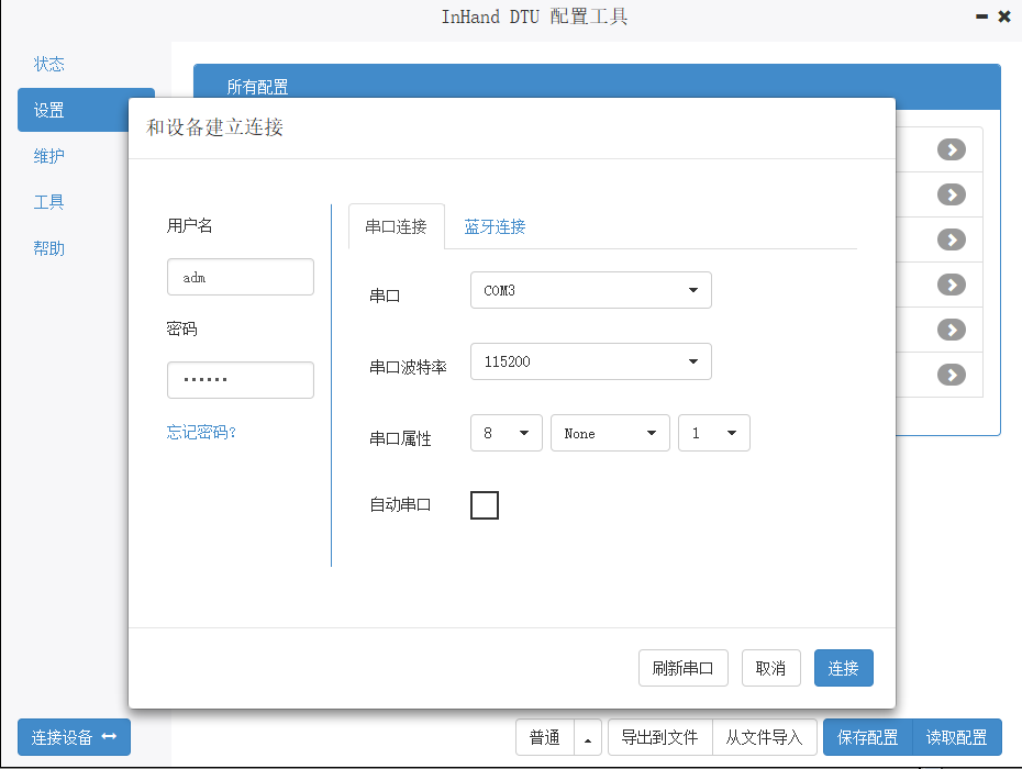 电脑运行modbus slave 程序,模拟modbus客户端设备。串口连接至InDTU串口1业务端口。