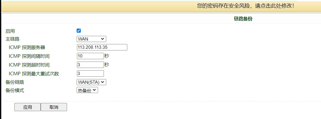 5. 设置链路备份,设置主接口为WAN口备份接口为WAN(sta)口。选择网络》链路备份