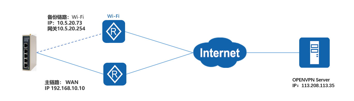 目的:IR615的链路备份(WAN为主链路、Wi-Fi做STA为从链路),当VPN建好后,WAN口主链路无线网络为备用链路。设备固件版本:2.3.0.r5114。