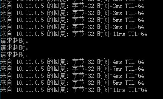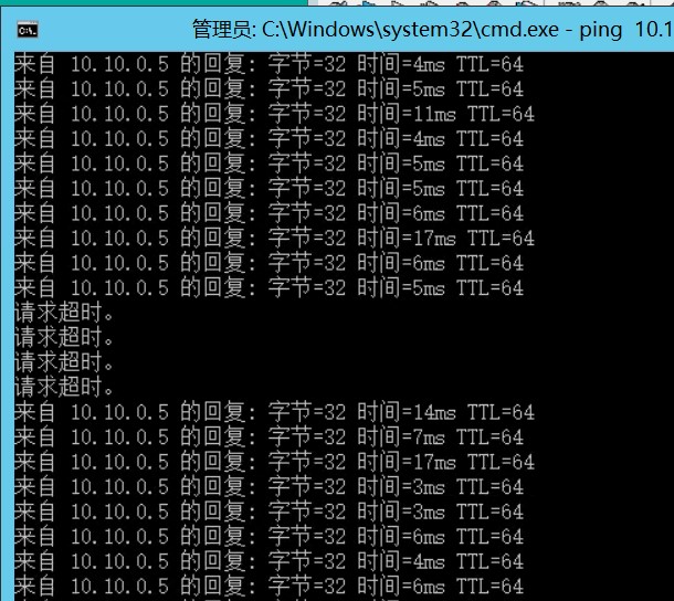 OpenServer端查看网络连通性,可以看到模拟故障后丢失三个数据包。