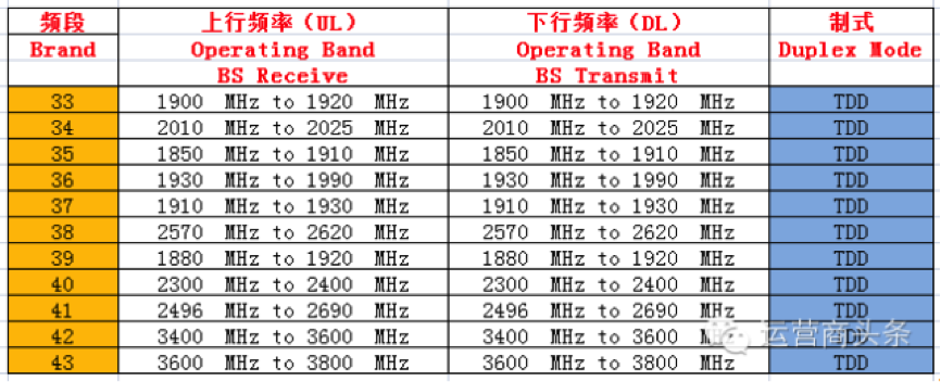 对于4G网络,目前4G网络(LTE)分为TDD和FDD两种模式,这两种模式支持的频段是不一样的,他们是这样划分的。