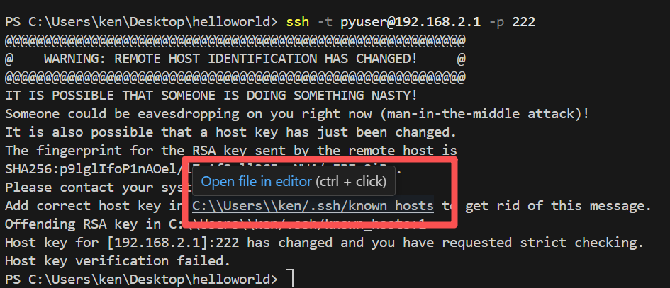 VG710 SSH访问显示密钥验证失败问题 yanggeng 笔者为深圳信息职业技术大学智能无人系统校企联合研发中心主任,用映翰通设备开发出了一系列行业软硬件一体化应用系统,欢迎大家来合作,联系微信beyond_geng,邮箱:yangg@sziit.edu.cn 0 人点赞了该文章 · 819 浏览 当很久没有访问,出现密钥验证失败问题时,如下图所示此时只需要点击图中文件位置并打开然后把文件里面的内容删除并保存即可