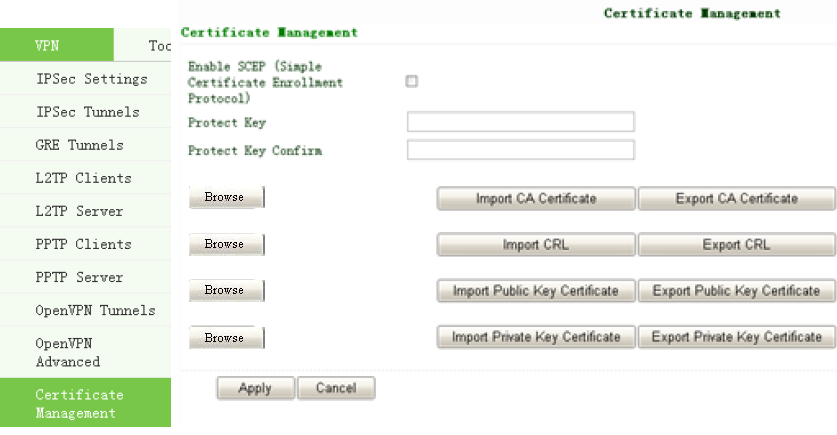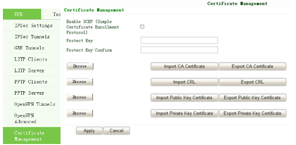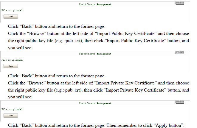 Attention: You should insert the root CA (e.g.: ca.crt) before click “Apply button”.