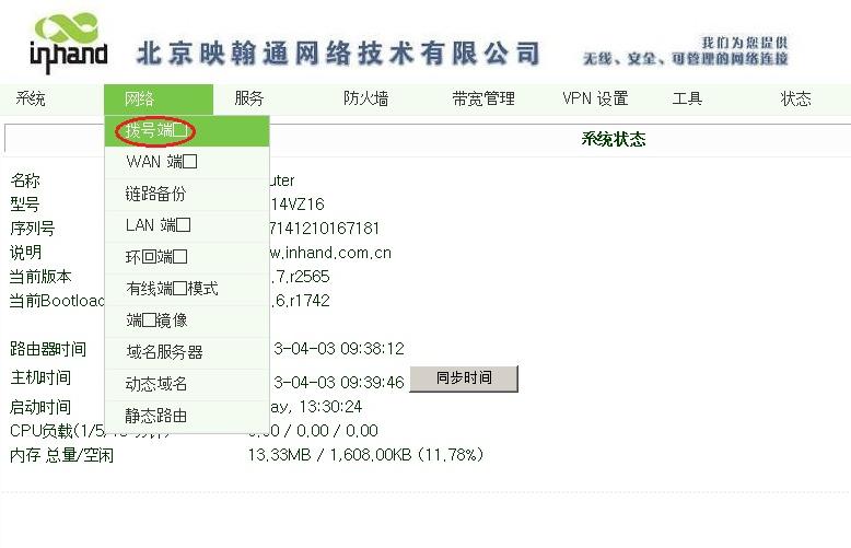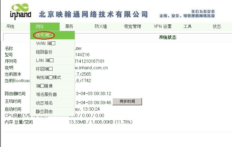 接通InRouter电源,用一根网线连接InRouter的LAN口和PC,打开浏览器,输入http://192.168.3.1,输入用户名adm,密码123456.