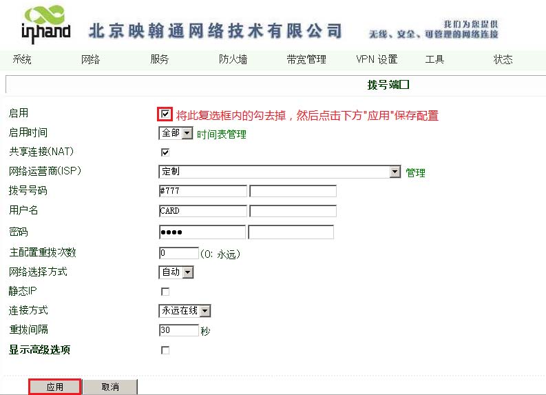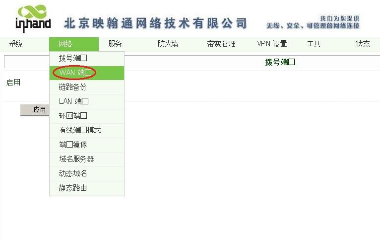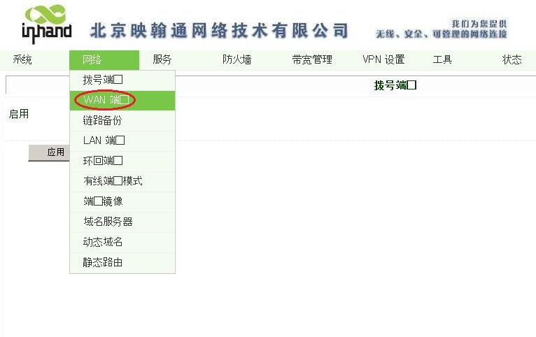 3.2.1 远端InRouter WAN口配置(如无WAN口或采用3G拨号则跳过此步骤)