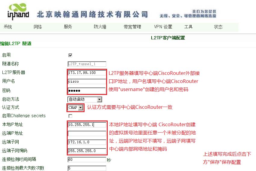 InRouter与Cisco Router构建L2tp VPN 配置指导