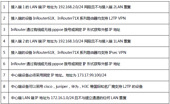 接入端1设备为InRouter 61X/71X;外部IP地址193.169.99.100,掩码255.255.255.0;内部IP地址192.168.2.1,掩码255.255.255.0