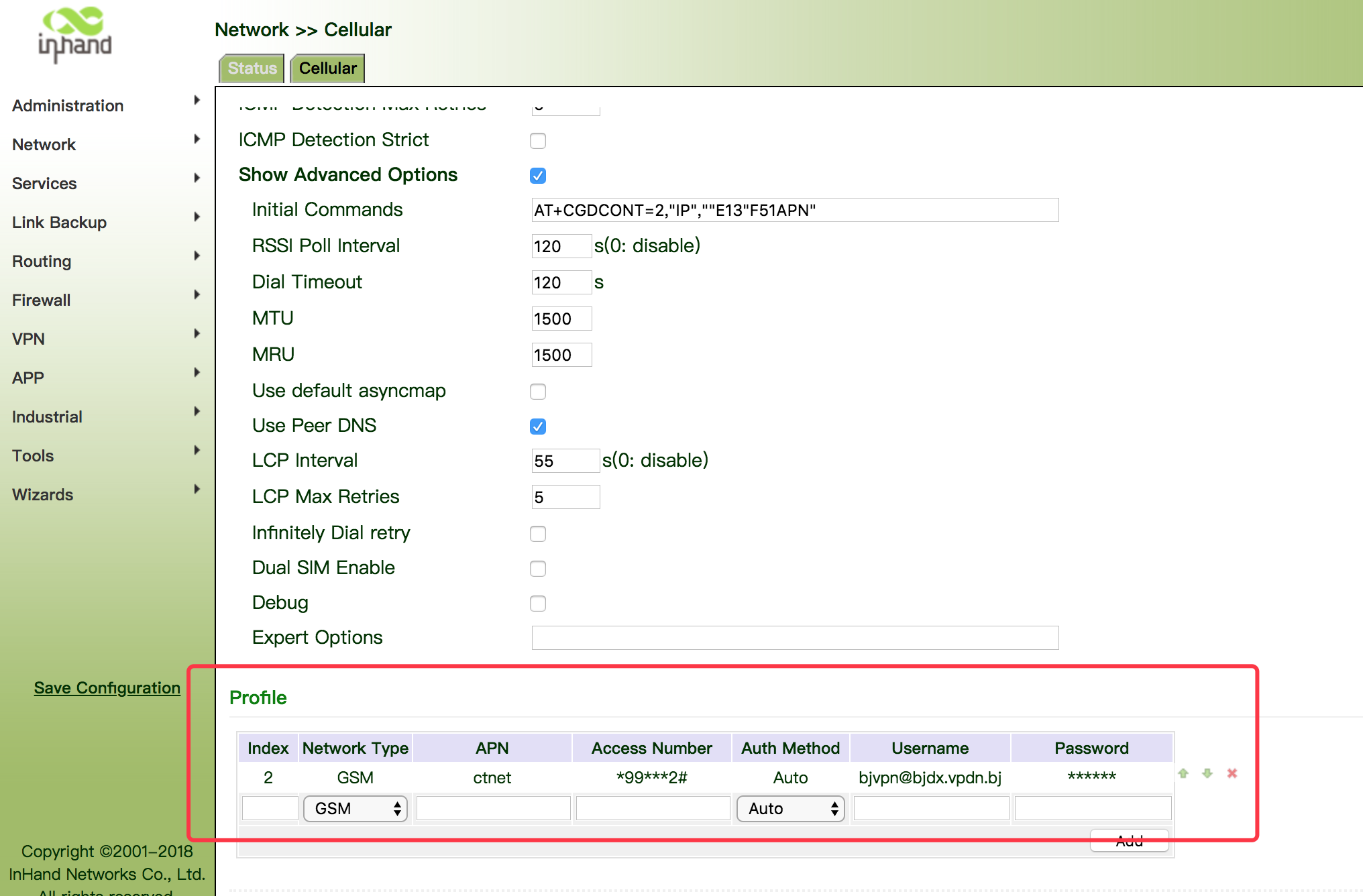 网络-拨号接口:调整拨号参数集和初始化拨号命令