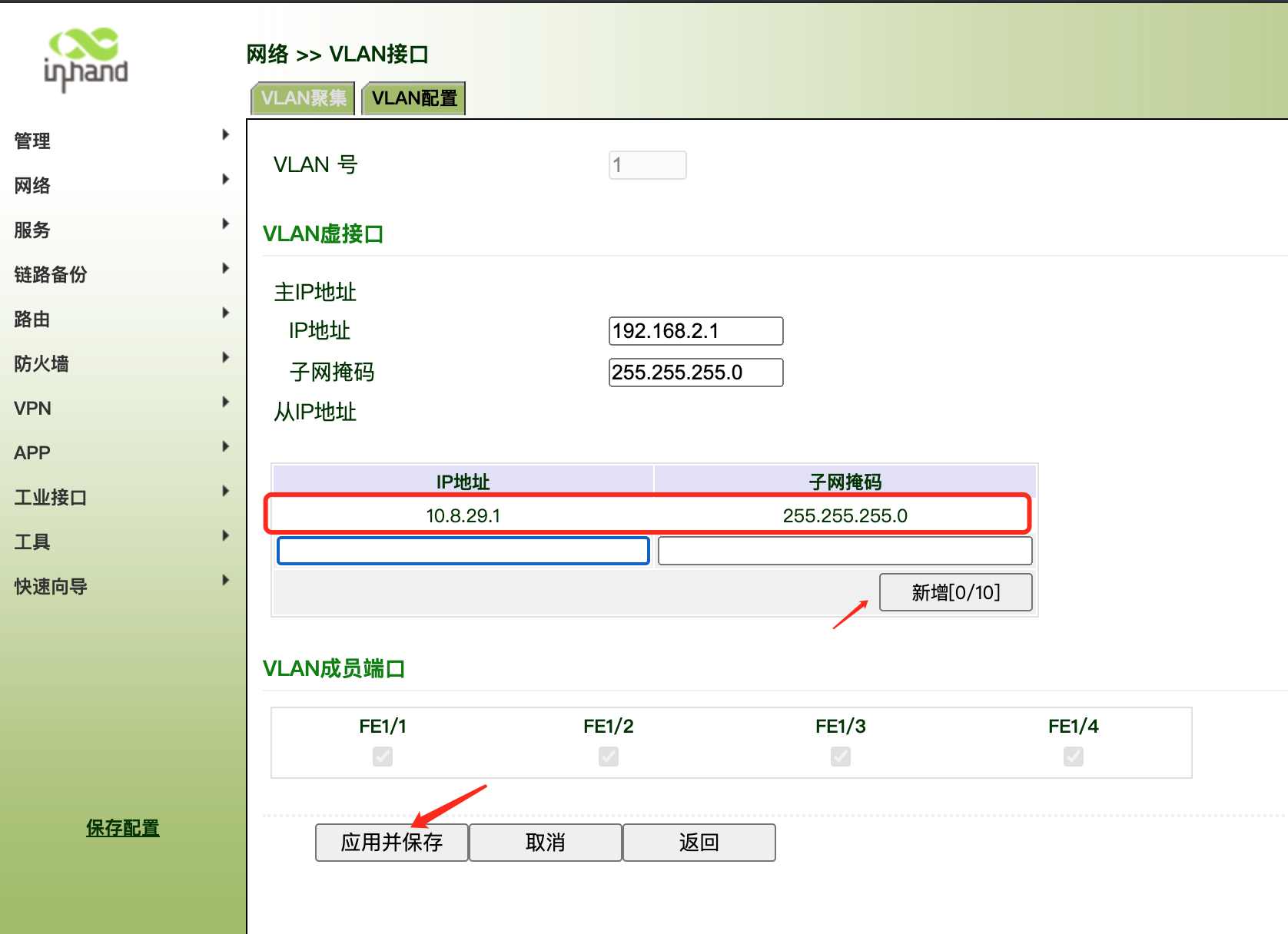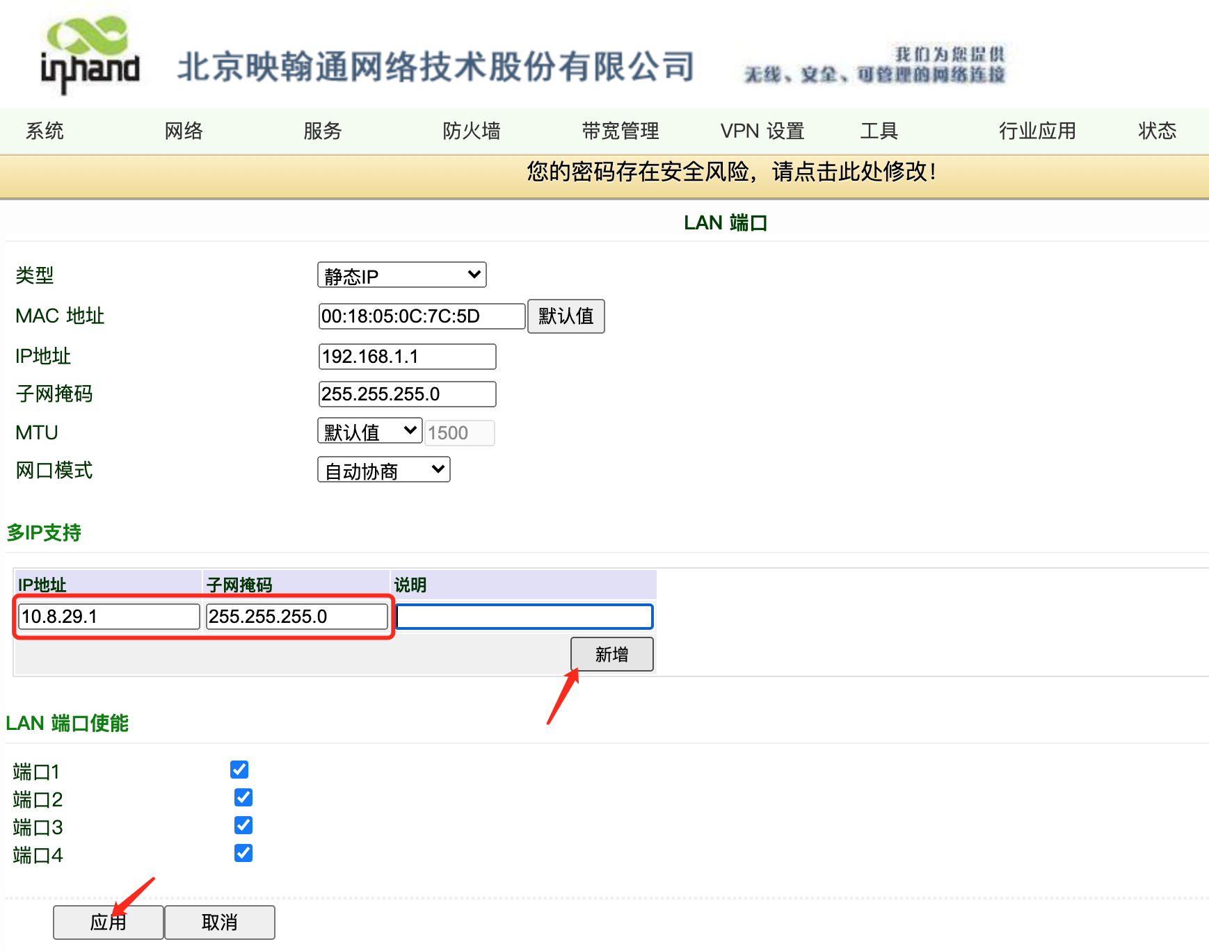 IR600 请配置 网络>>LAN端口地址配置为 10.8.29.1/255.255.255.0